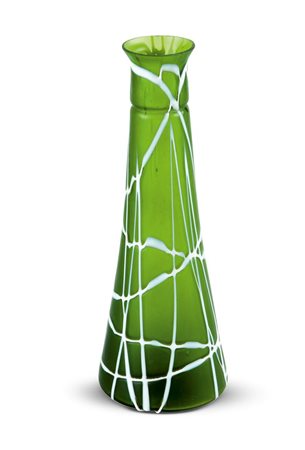 PALLME KONIG E HABEL Vaso troncoconico in vetro verde e filamenti bianchi in...