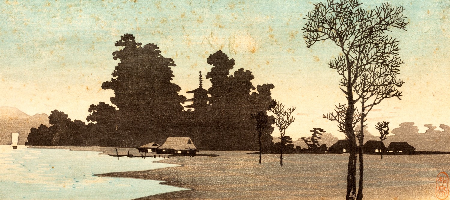 Stampa raffigurante paesaggio fluviale, Giappone secolo XX