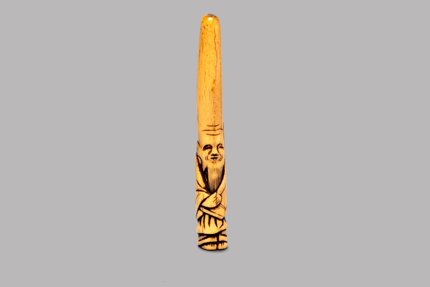 Netsuke in corno di cervo, raffigurante Fukurokuju (longevità), Giappone periodo Edo secoli XVIII-XIX