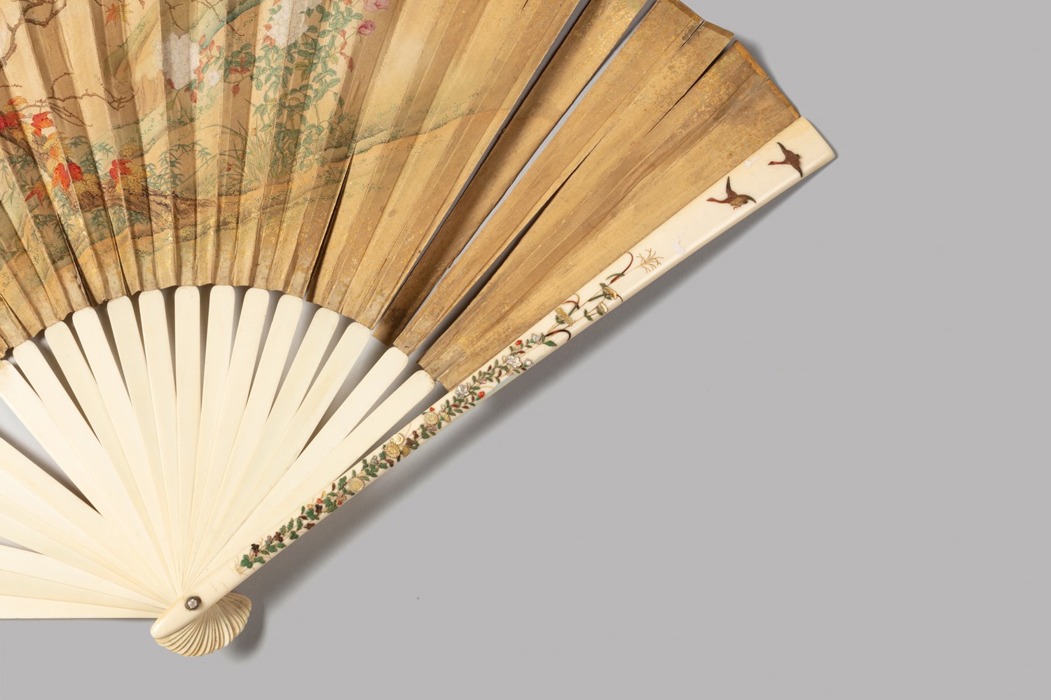 Ventaglio Shibayama, con applicazioni in madreperla e smalti, Giappone periodo Meiji