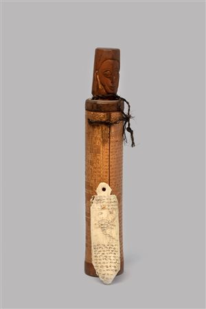 Lotto di due antichi calendari Batak Toba, uno in osso e uno in bambù, Indonesia