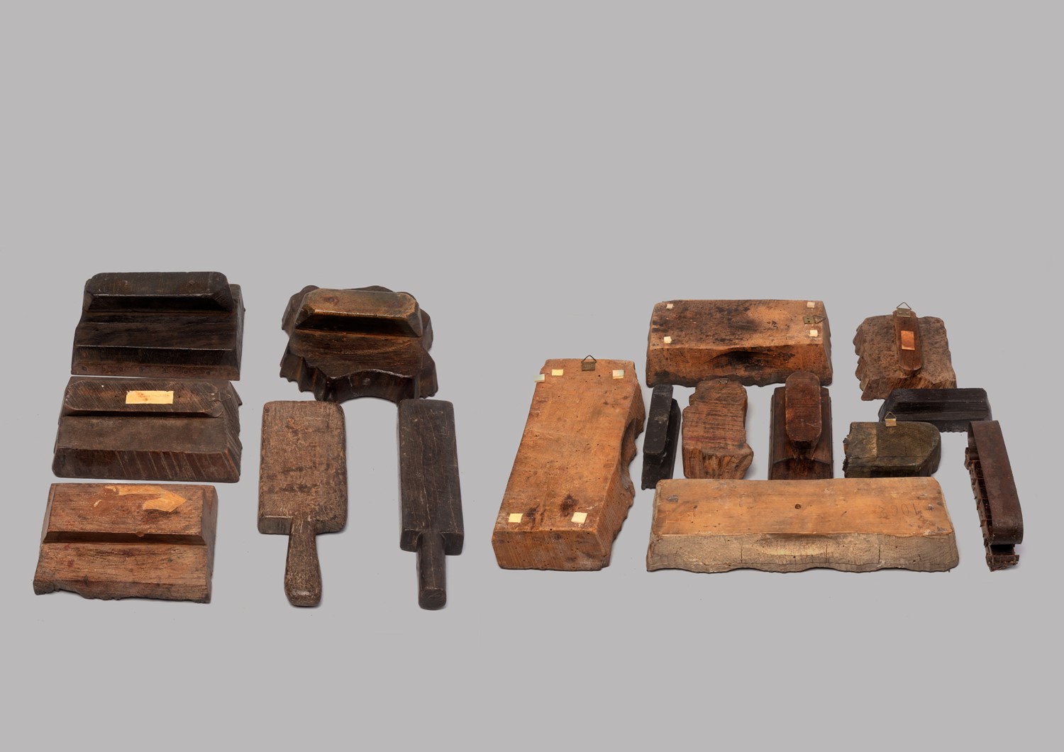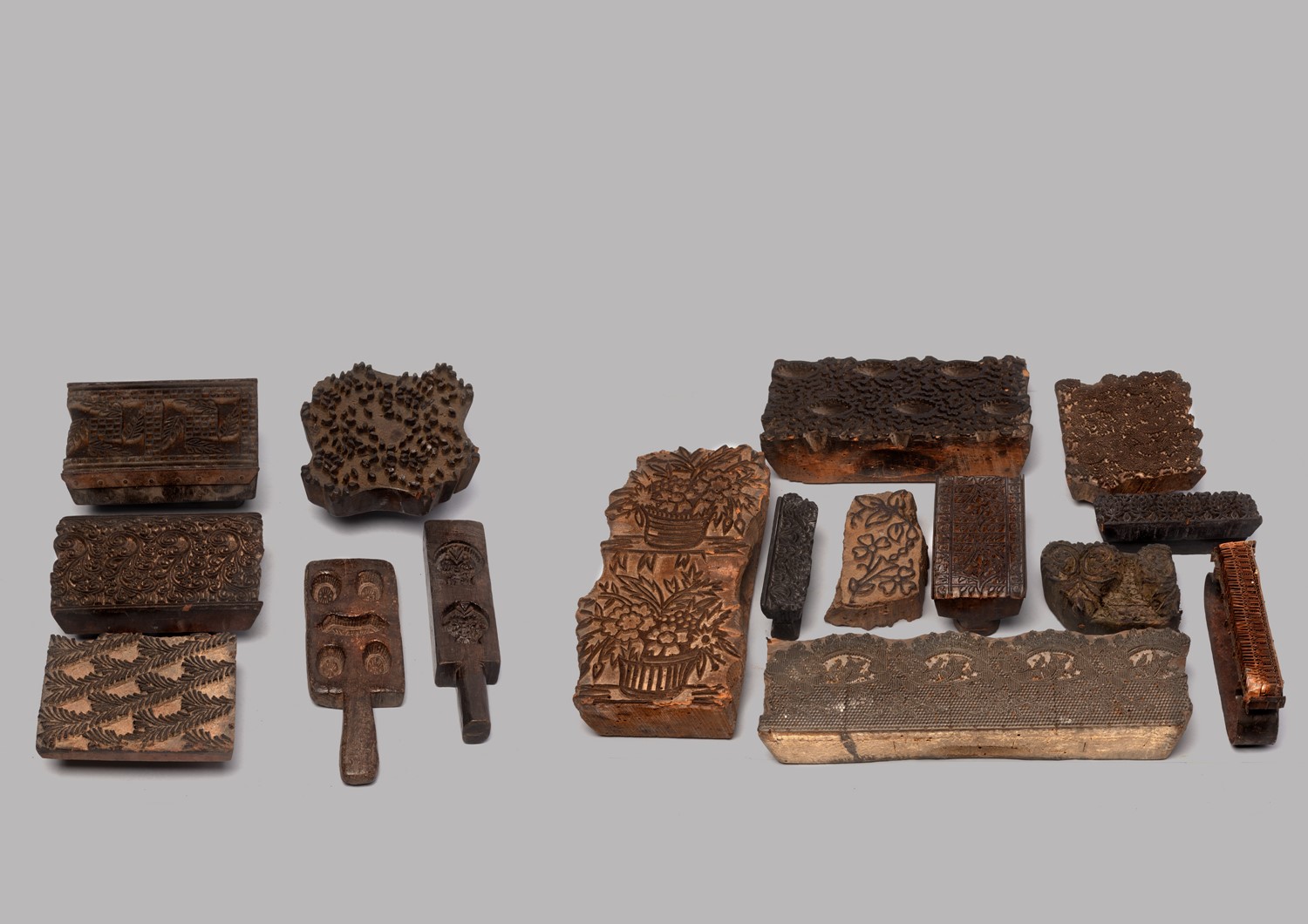 Lotto di 16 antichi stampi indiani da tessuto in legno