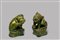 Due antichi cani di Pho in ceramica invetriata marmorizzata verde, Cina