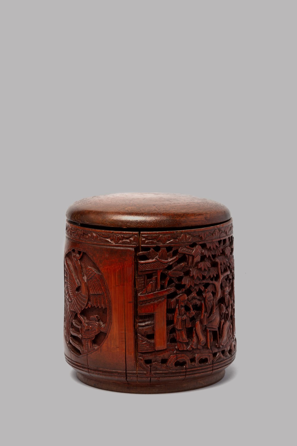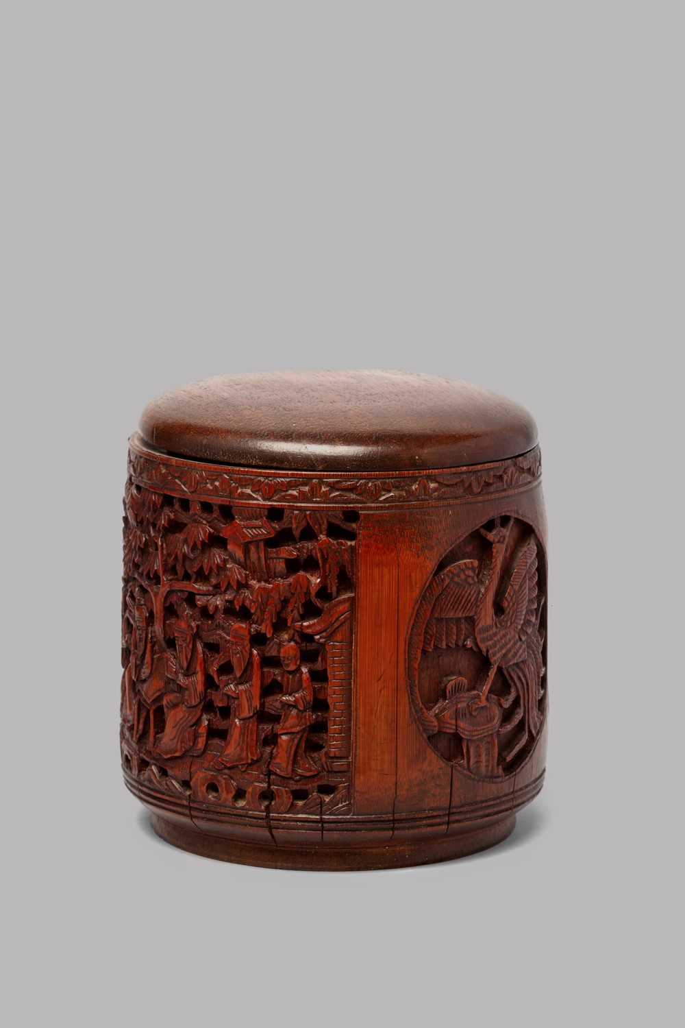 Scatola cilindrica in bamboo con coperchio, Cina secolo XIX