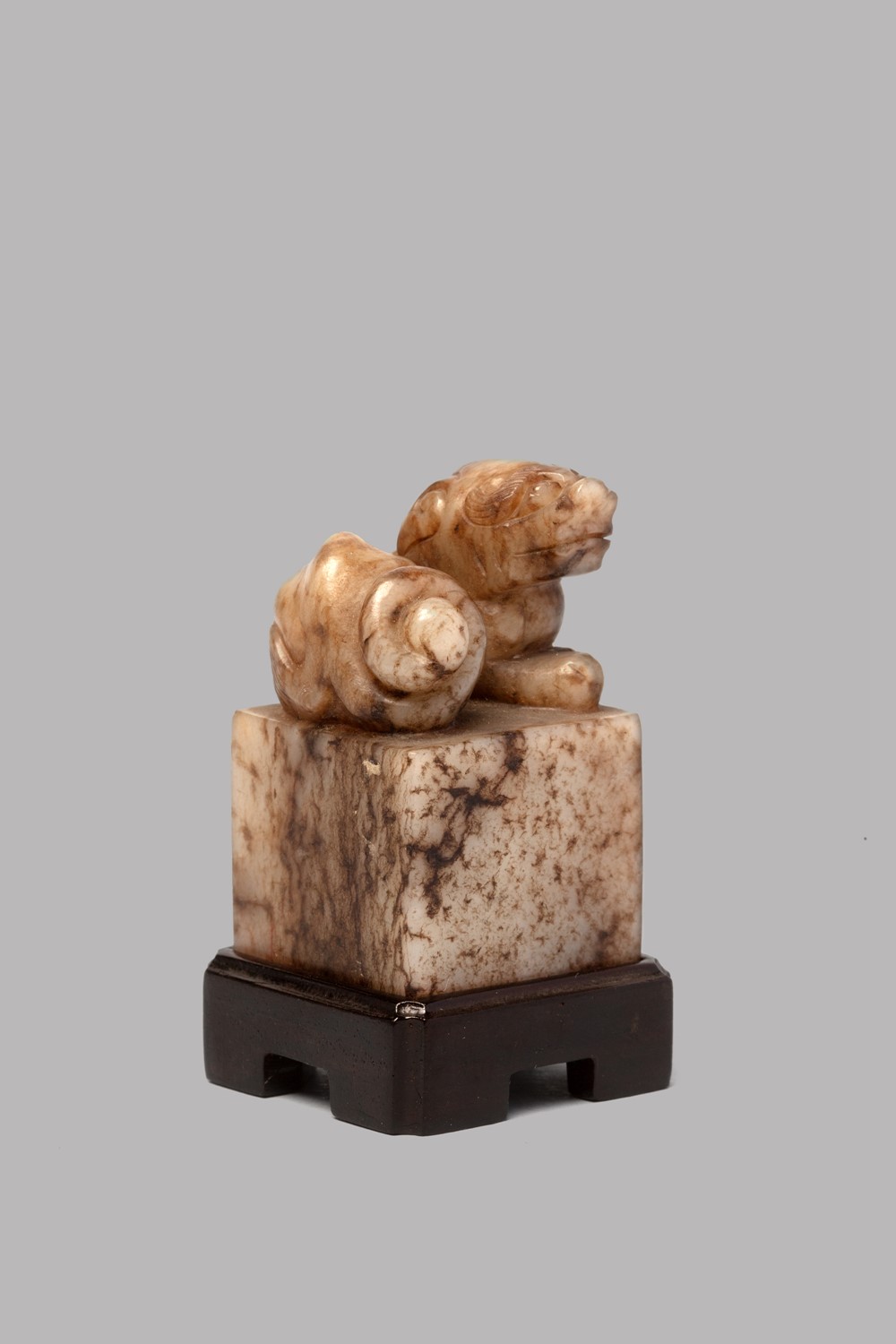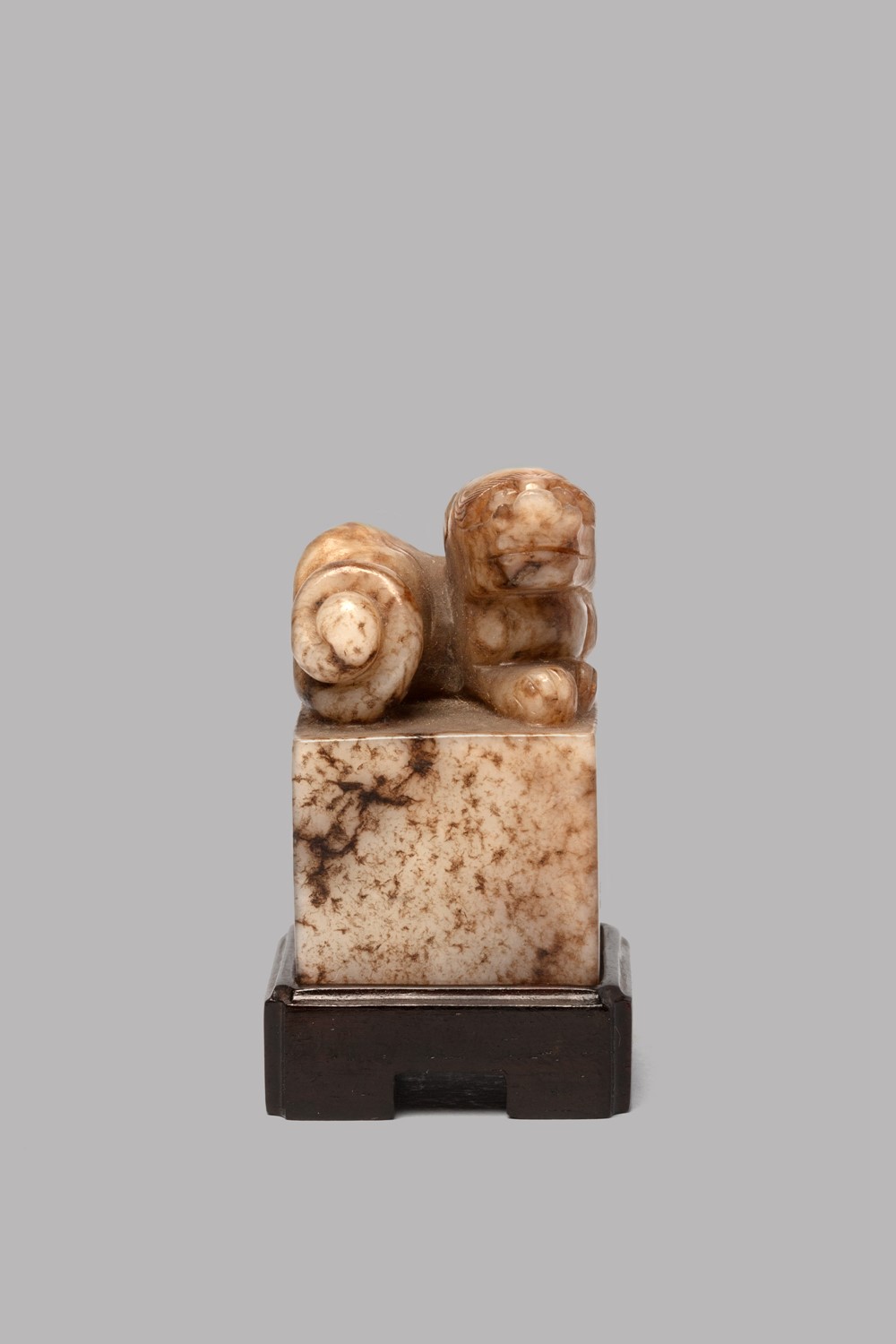 Sigillo in giada chiazzata sormontato da cane di Pho, Cina dinastia Qing