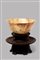 Antica coppa in giada su base in legno a forma di crisantemo, Cina
