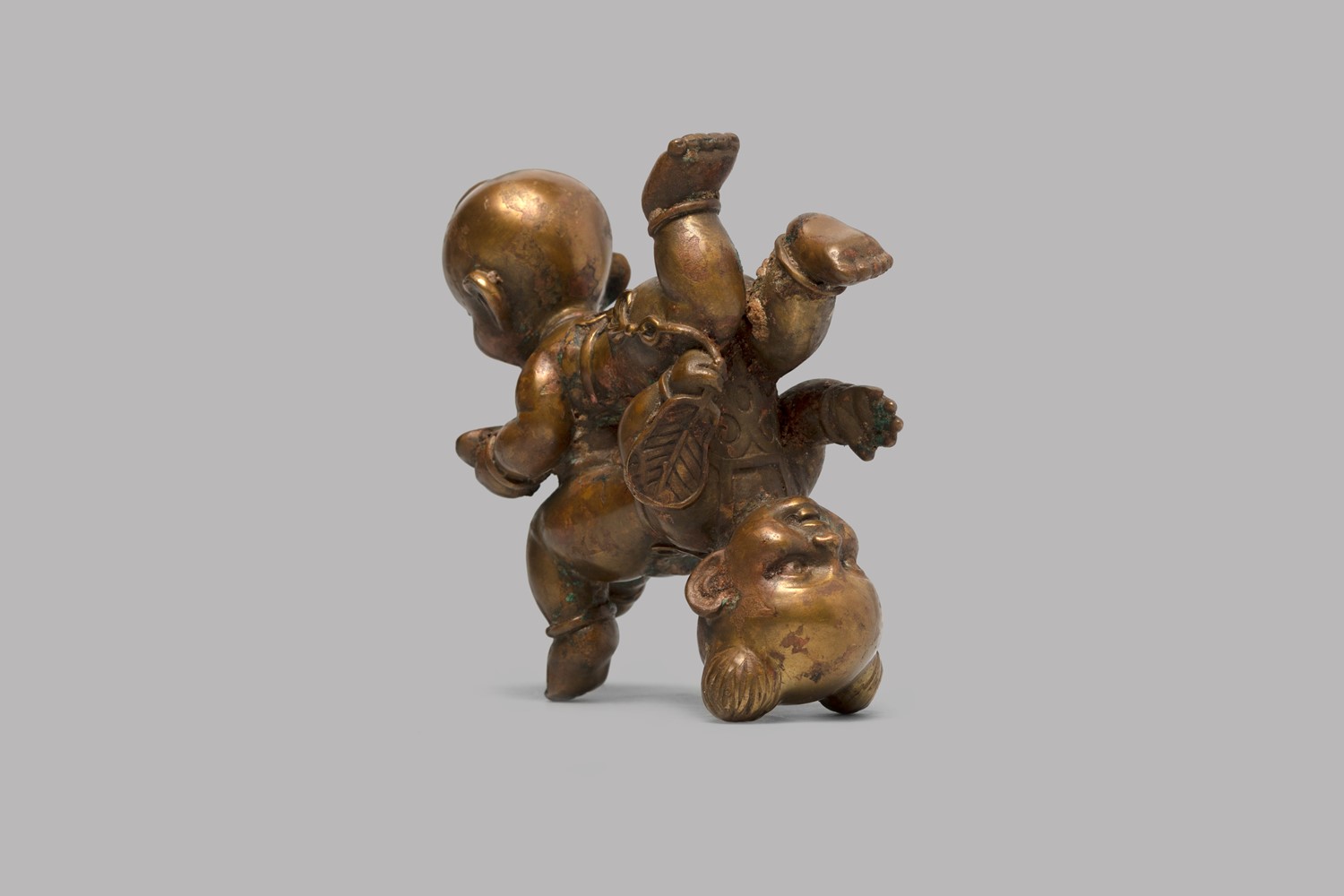 Gruppo scultoreo in bronzo raffigurante coppia di gemelli, Cina secoli XIX-XX