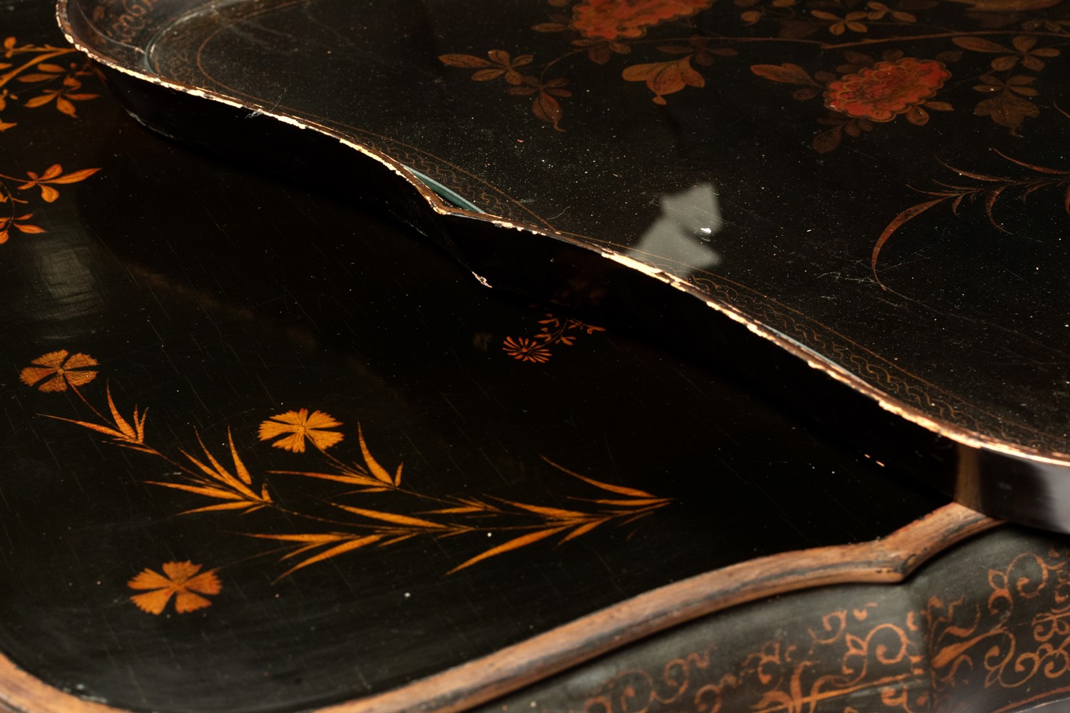 In lacca nera e decorazioni in oro raffiguranti uccelli su ramo fiorito