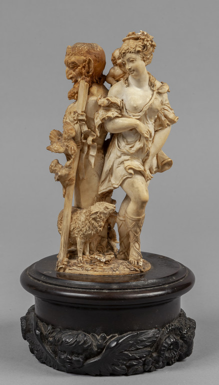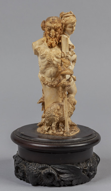 Venere e Pan scultura in schiuma poggiante su base in legno ebanizzato sec.XIX