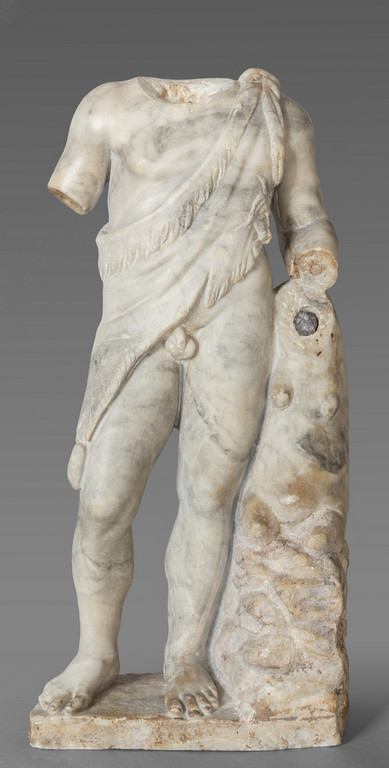 Scuola romana sec.XVI Ercole e il cinghiale scultura in marmo statuario (mancanze)