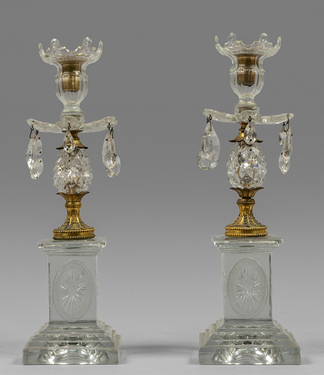 Coppia di candelieri in cristallo e bronzo dorato sec.XIX
