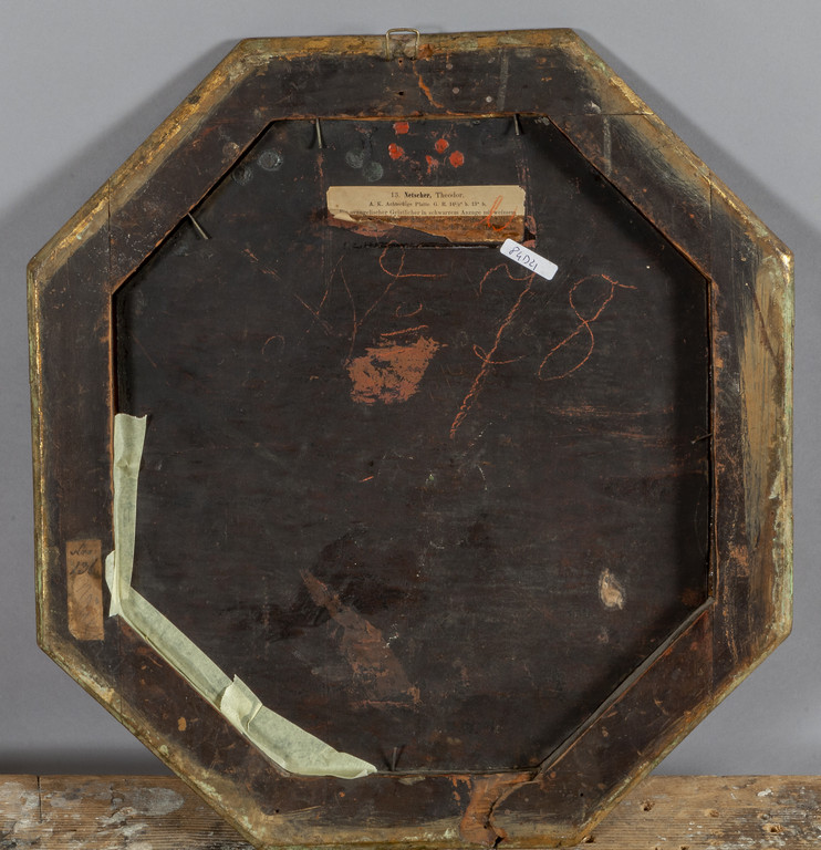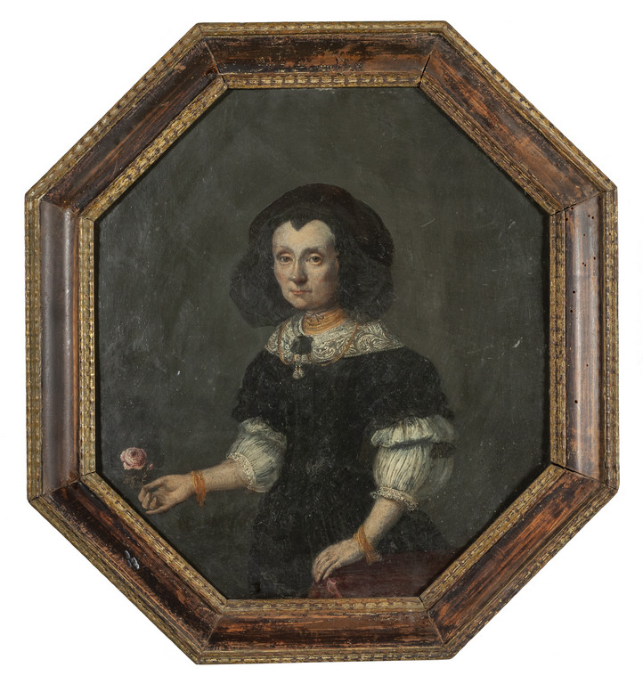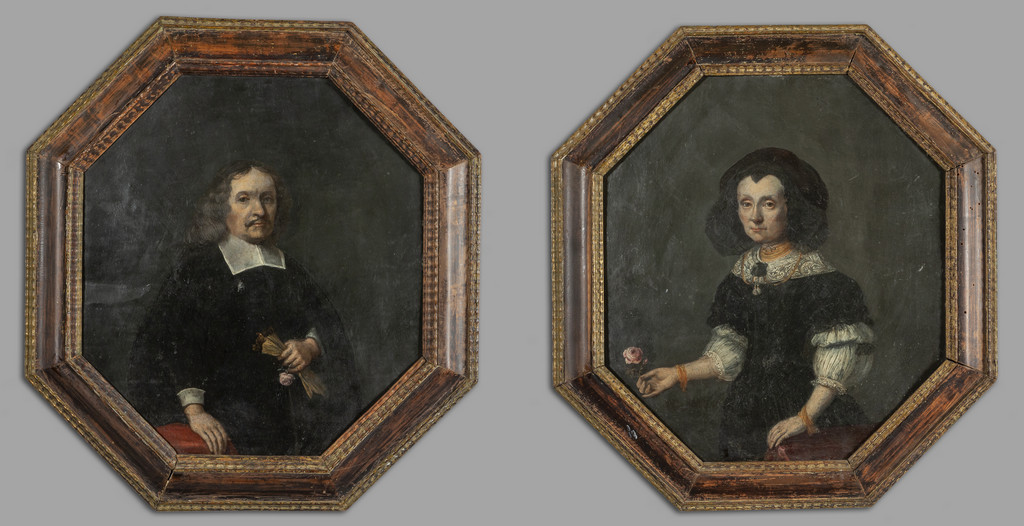 (attribuito) 'Personaggi' coppia di olii su rame di forma ottagonale