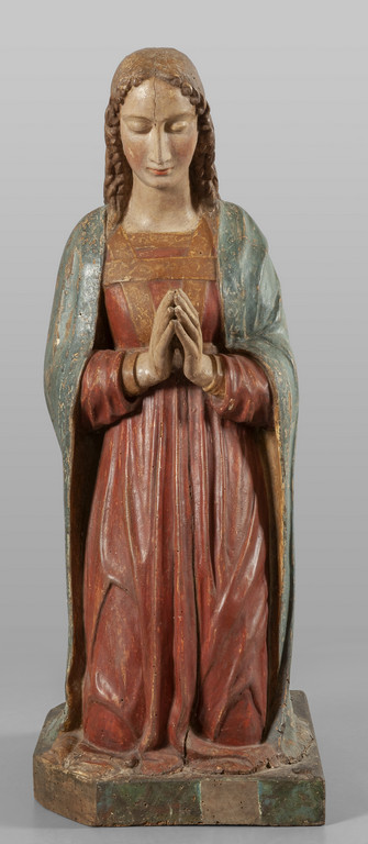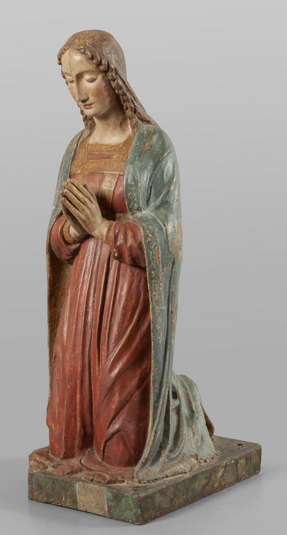 Madonna adorante scultura in legno policromo Centro Italia sec.XVI