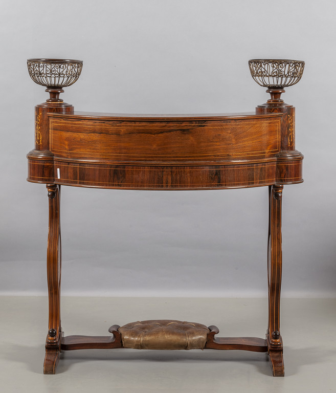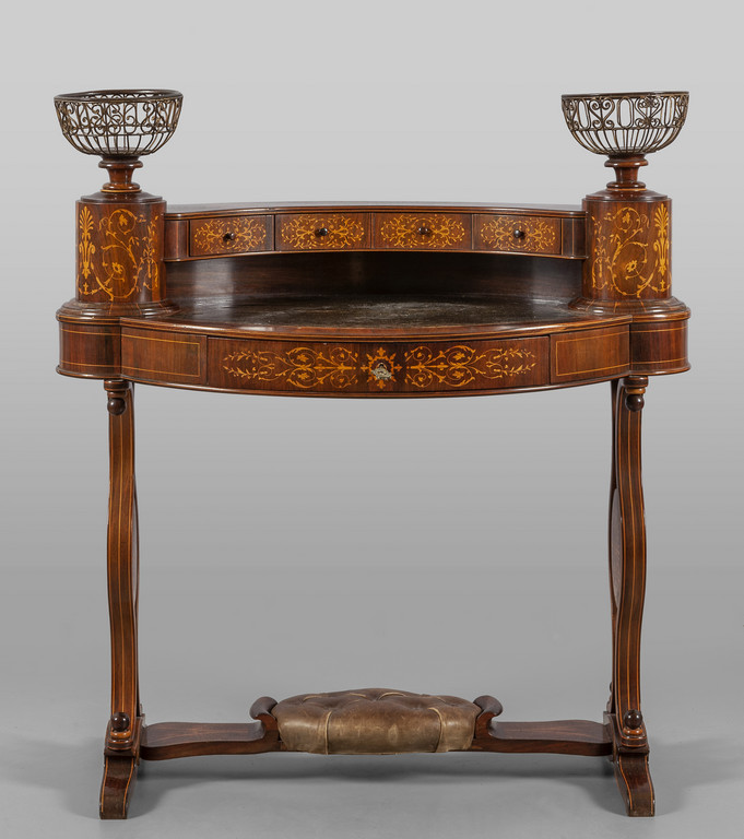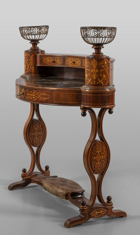 Rara scrivania Carlo X da centro lastronata in palissandro e finemente intarsiata in bosso Torino I metà sec.XIX (una molto simile si trova nel Castello di Stupinigi)