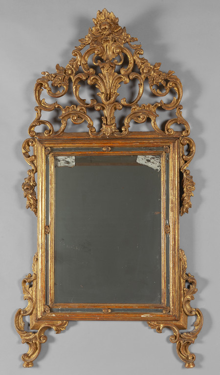 Specchiera in stile Luigi XIV in legno finemente intagliato e dorato Piemonte sec.XX