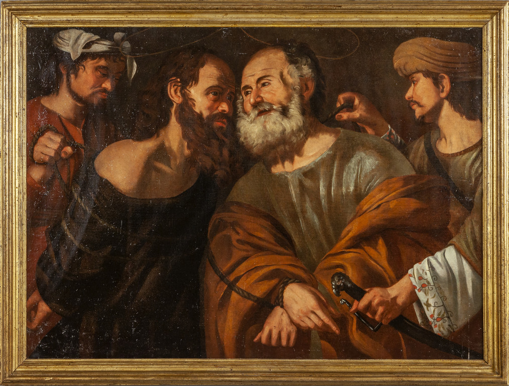 Scuola caravaggesca sec. XVII 'San Pietro' olio