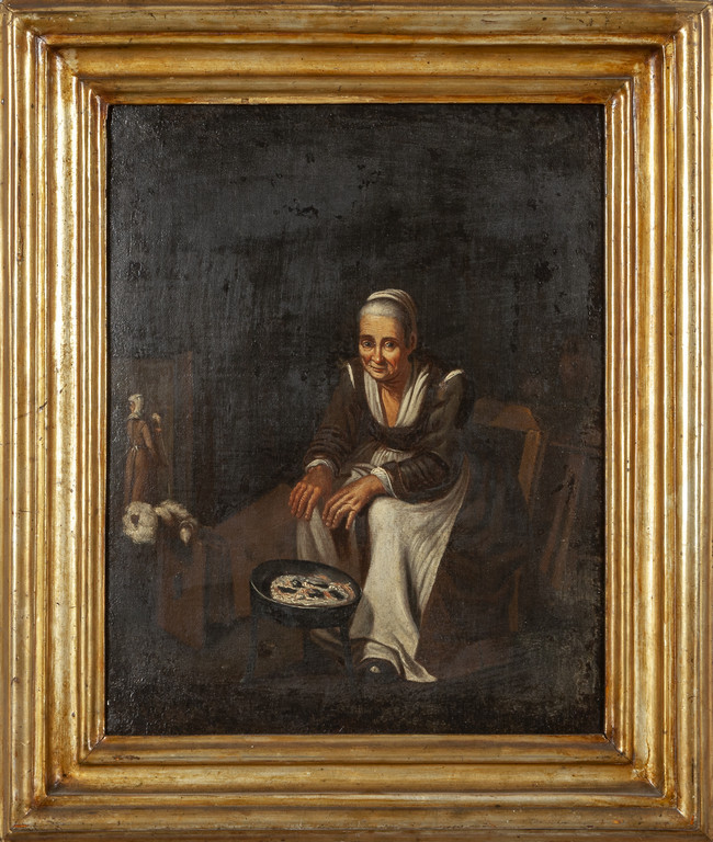 Scuola fiamminga sec.XVIII 'Davanti al braciere' olio