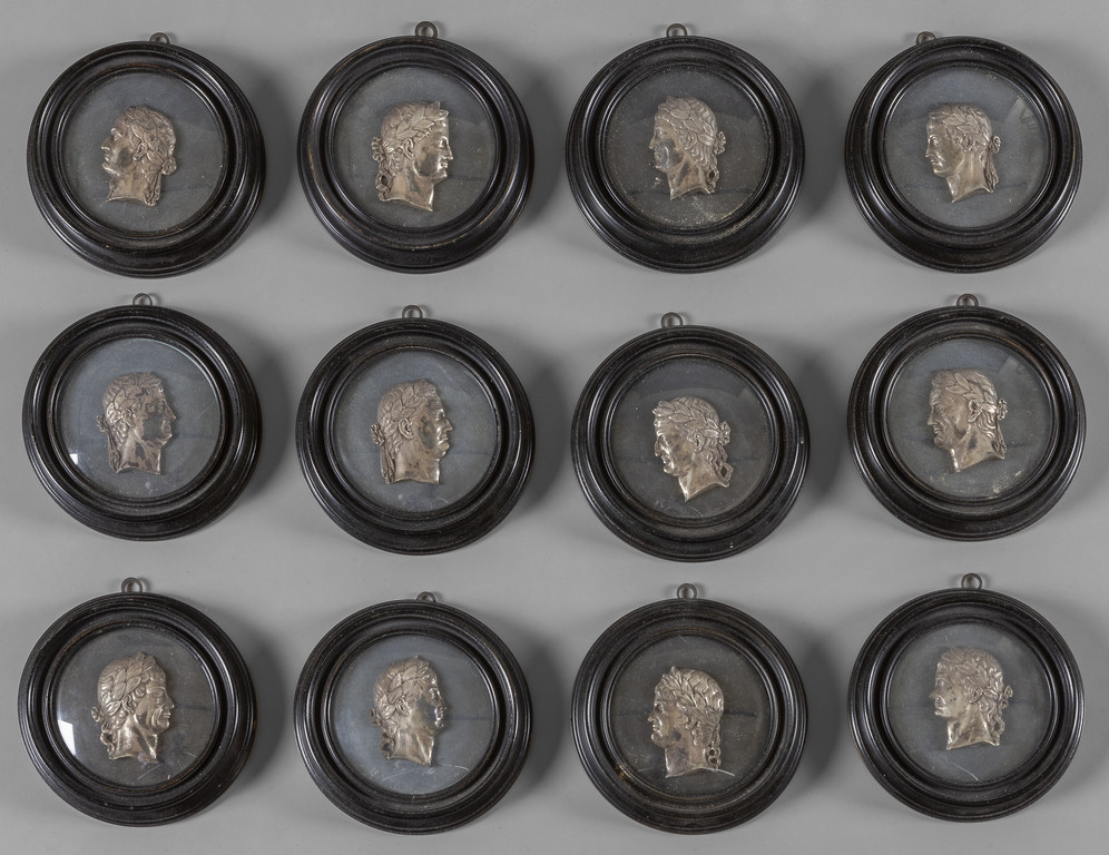 Cesari dodici profili in argento con cornici in legno ebanizzato sec.XIX