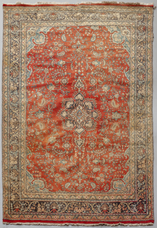 Grande tappeto orientale a fondo arancio con rosone centrale