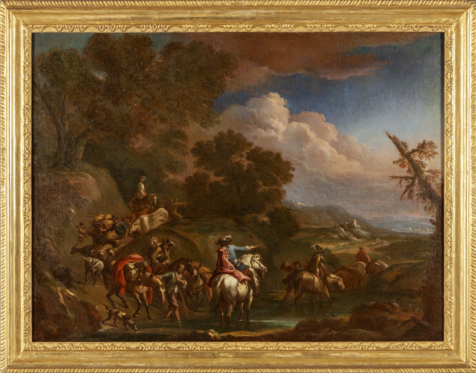 'Il guado' olio cornice in legno intagliato e dorato