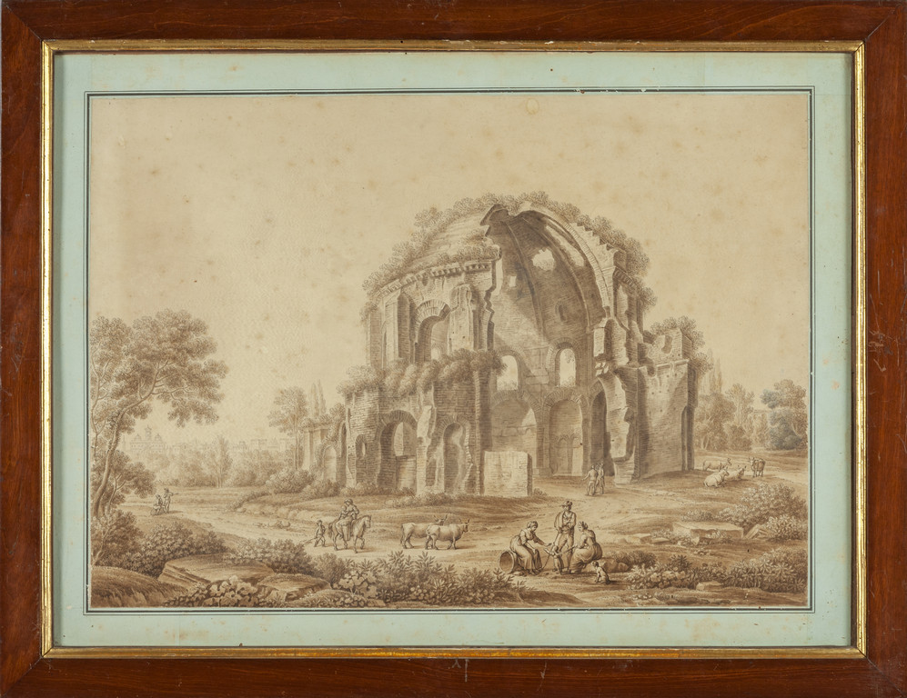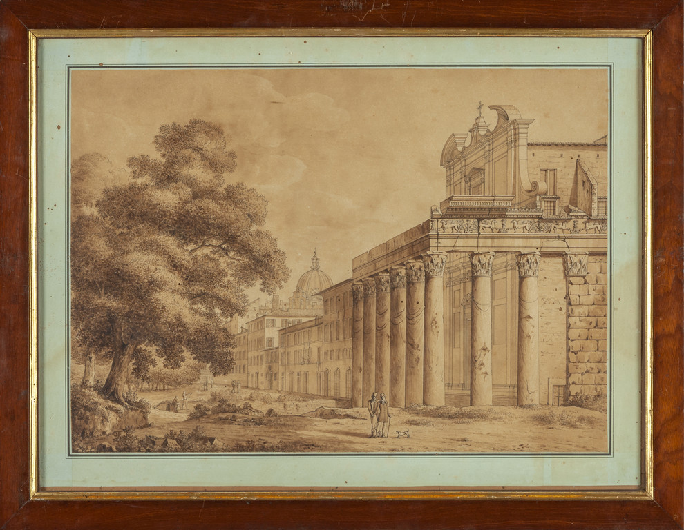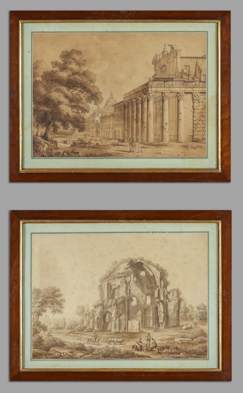Vedute di Roma animate da figure coppia di disegni su carta sec.XIX