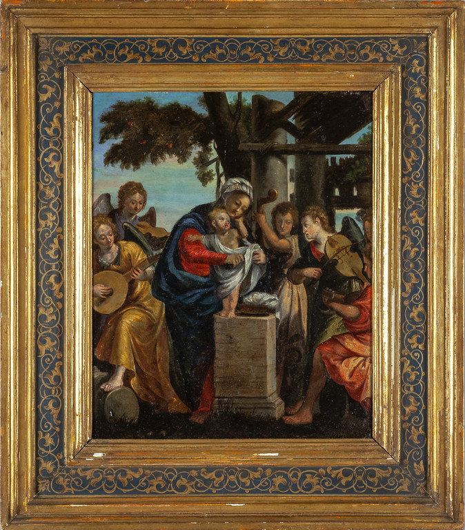 Scuola veneta sec.XVIII 'Scena religiosa' olio su rame