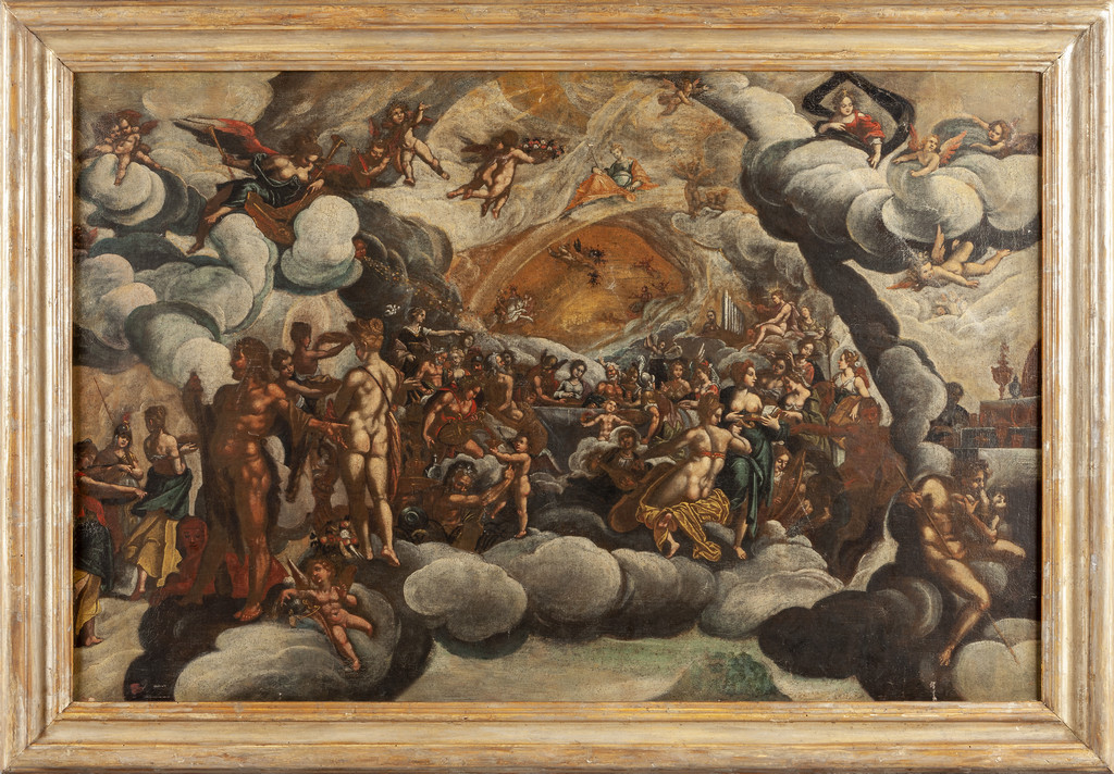 Scuola italiana sec.XVII 'Scena Biblica' olio cornice coeva in legno dorato