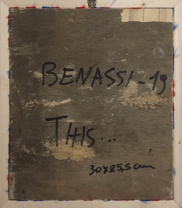 SAURO BENASSI – This - Stoffa su legno cm 30x25,5 – Opera con cornice