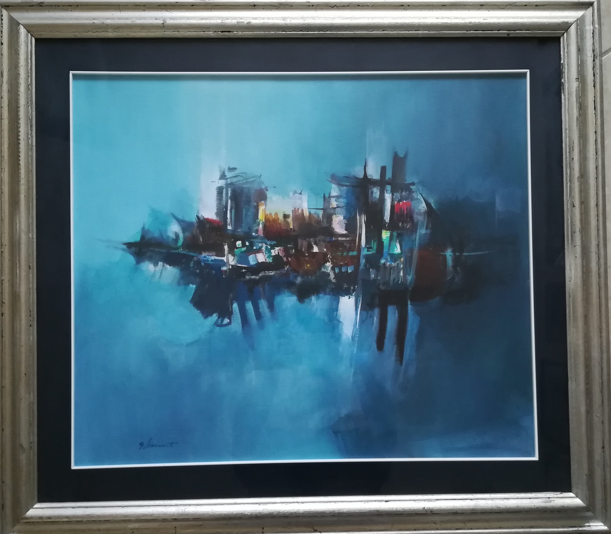 GIUSEPPE SIMIONATO – Tra città e industria – Olio su tela cm 60c70 – Opera con cornice