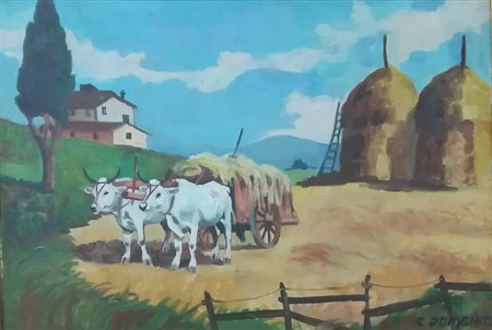 C. DOMENICI – Buoi e pagliai – Olio su tela cm 50x35 – Opera con cornice