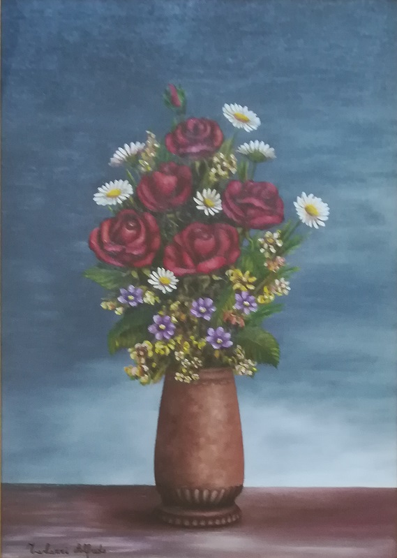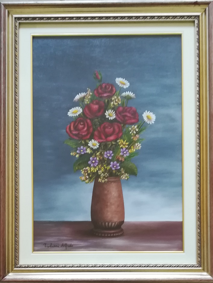 ALFREDO TARLAZZI - Vaso di fiori – Olio su tela cm 35x50 – Opera con cornice