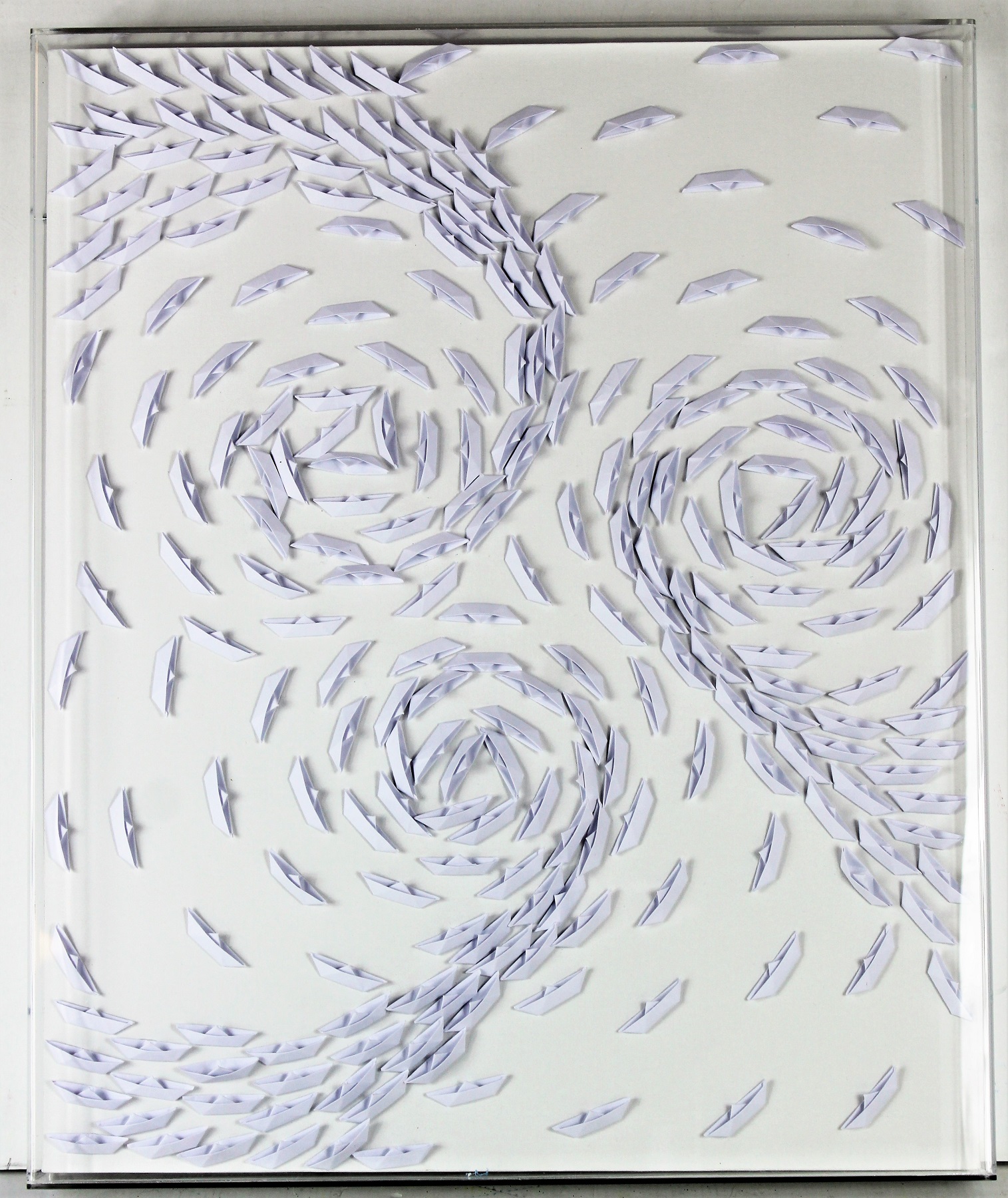 RICCARDO GUSMAROLI (1963) -Vortice bianco - barchette di carta su tela del 2021 cm 55x45 – Opera archiviata