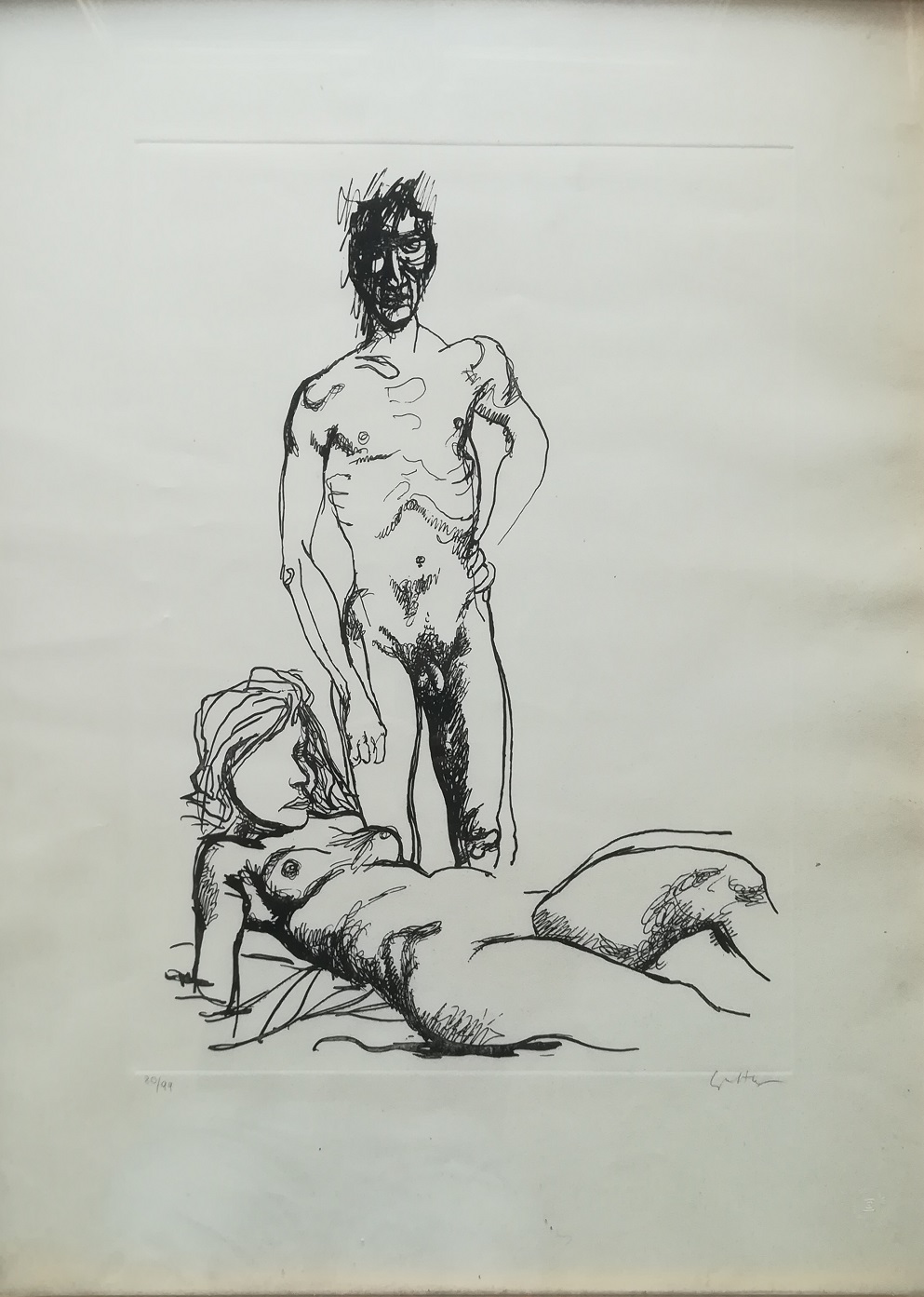 RENATO GUTTUSO (1911-1987) – Senza titolo – Acquaforte firmata a matita cm 55x76 – Numerazione 80/99 – Marchio a secco Labirinto Roma
