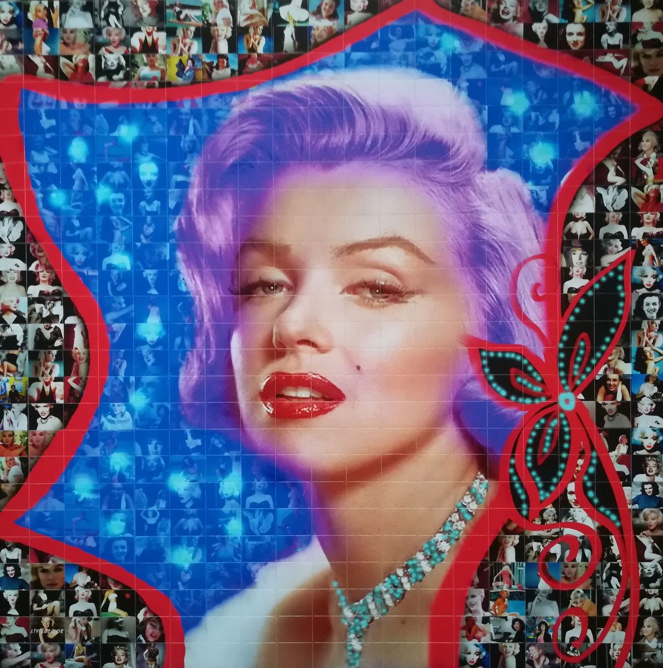 MARIA MURGIA (1935) – Omaggio a Marilyn Monroe – Fotomosaico digitale su pannello di Kapafix e intagliato a mano del 2020 cm 50x50