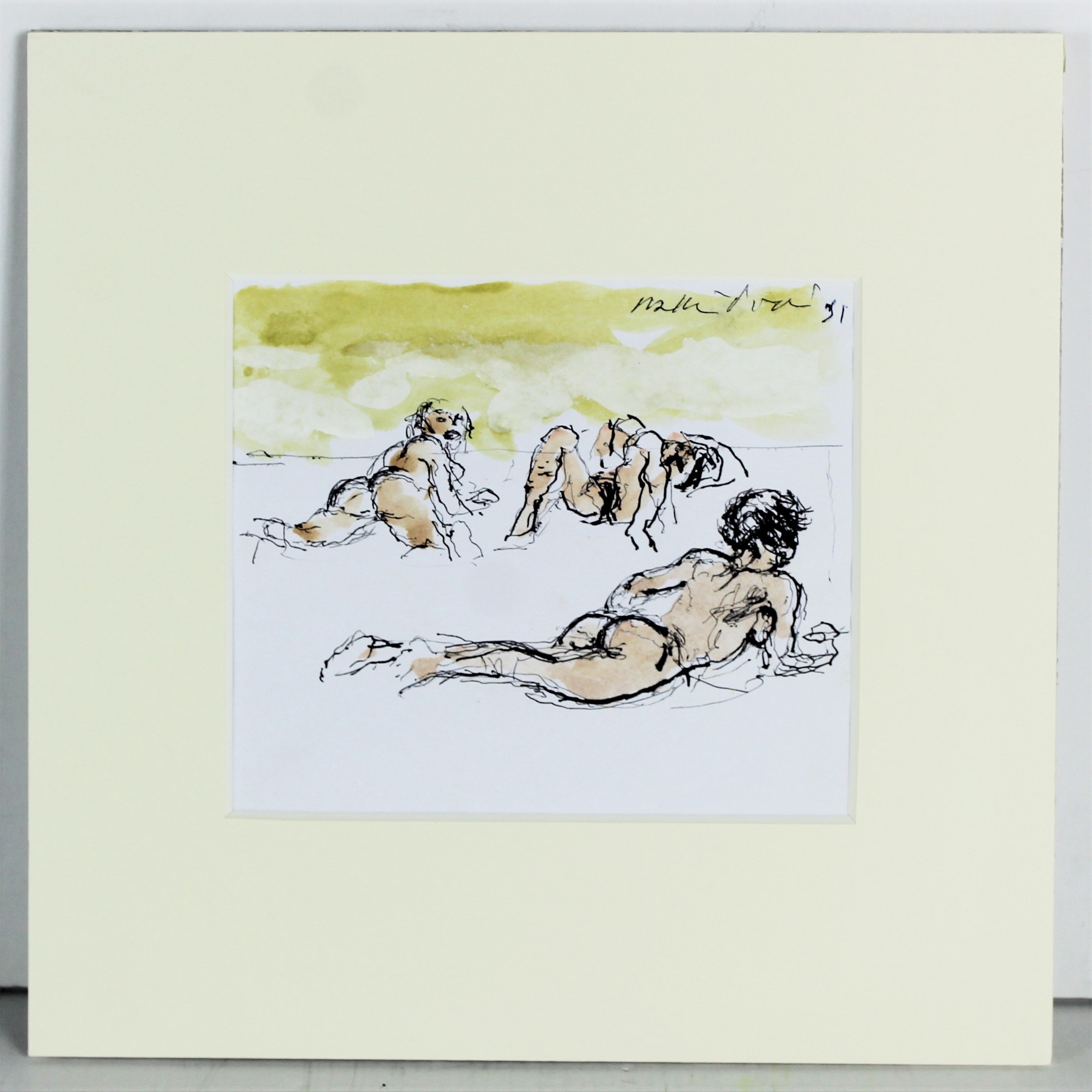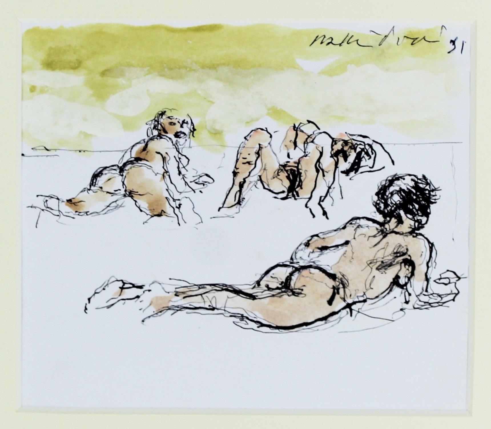 WALTER PIACESI (1929) – Bagnanti - china + acquerello su carta del 1991 cm 18x17 – Opera con autentica
