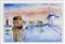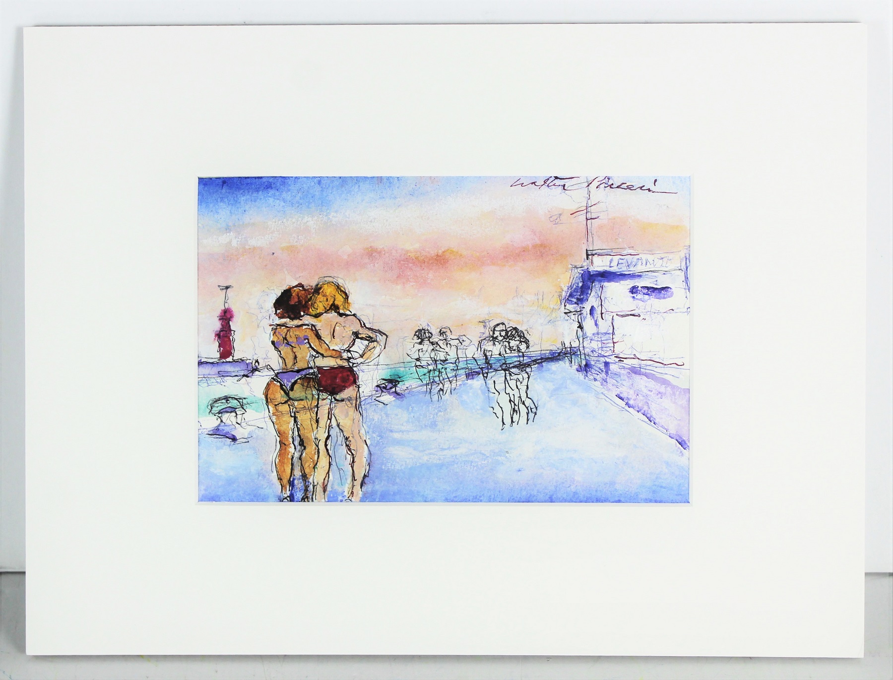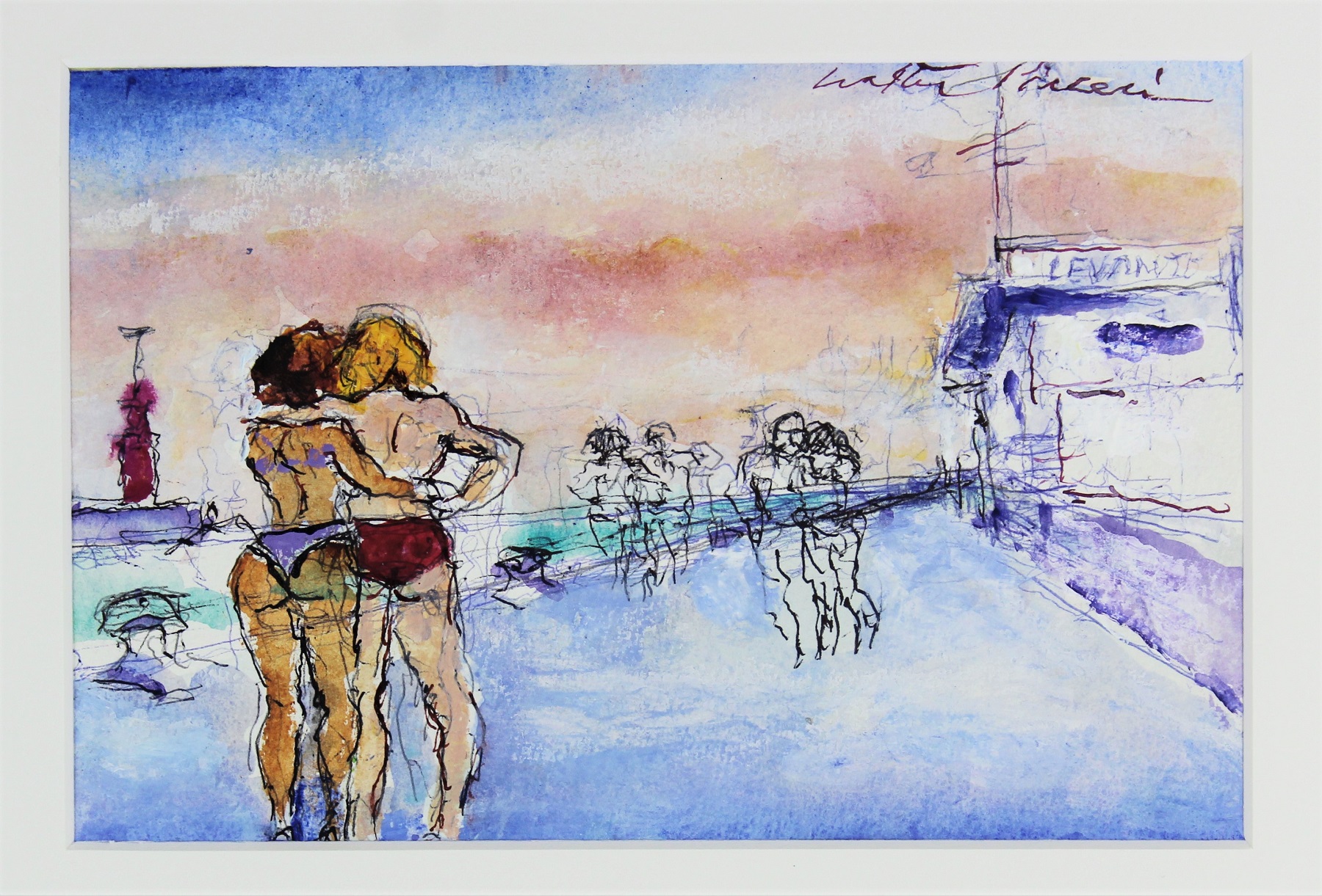 WALTER PIACESI (1929) – Lungo il molo levante - china + acquerello su carta del 2007 cm 16x24,5– Opera con autentica