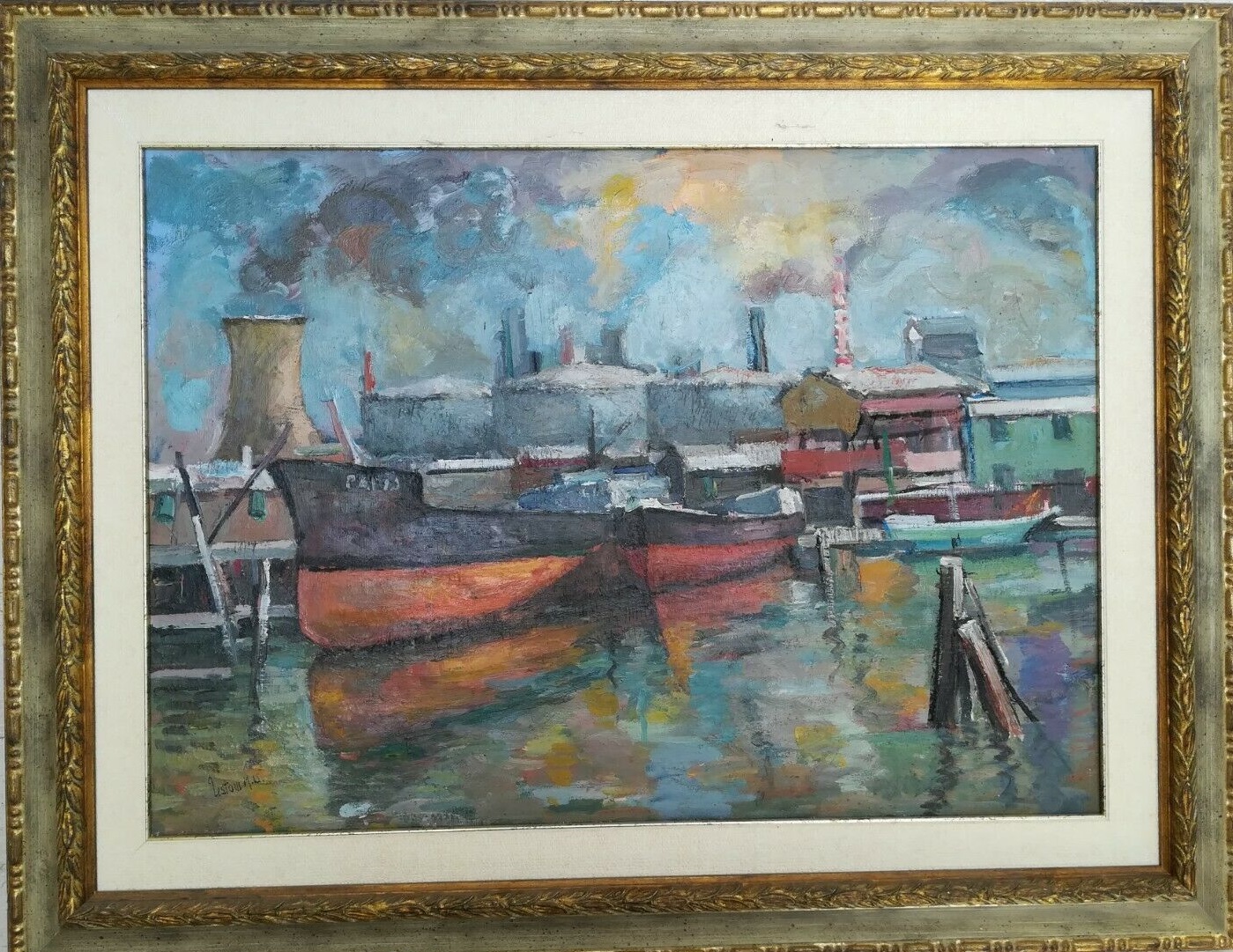 MARIO UMBERTO TESTONI (1940) – Porto di Ravenna – Olio su tela cm 70x50 – Opera con cornice