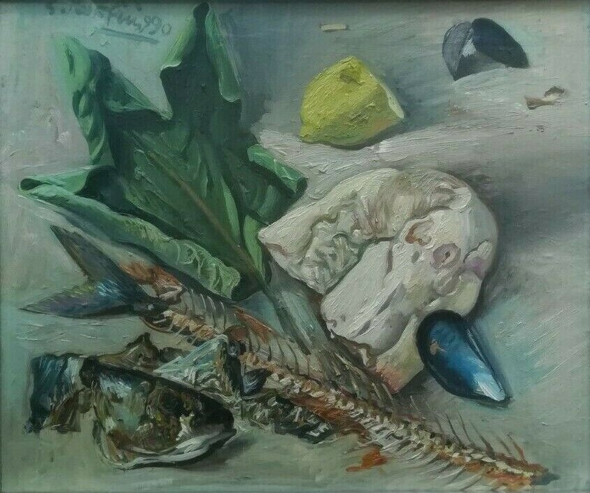 GIULIO RUFFINI (1921-2011) – Natura morta – Olio su tavola del 1990 cm 40x35 – Opera con cornice