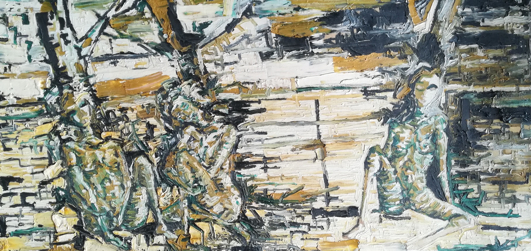 ANONIMO – Figure femminili – Olio si tela grezza molto materico cm 100x50