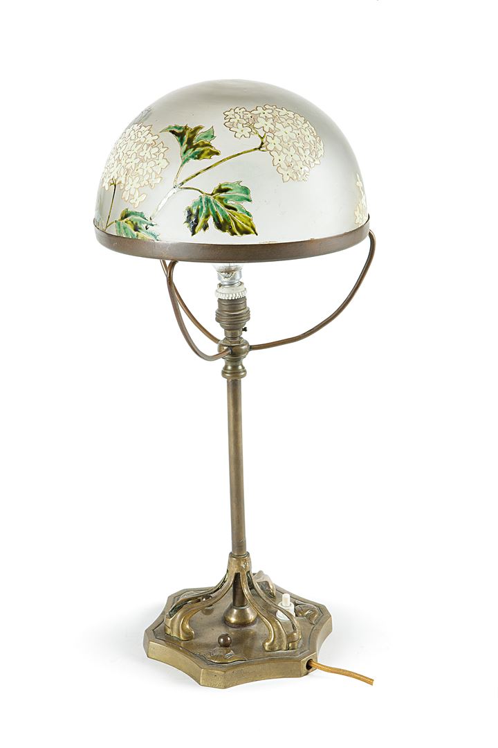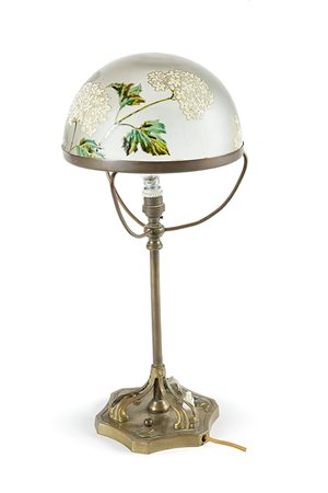 LAMPADA in vetro a champignon, abat-jour a decoro floreale dipinto a smalti...