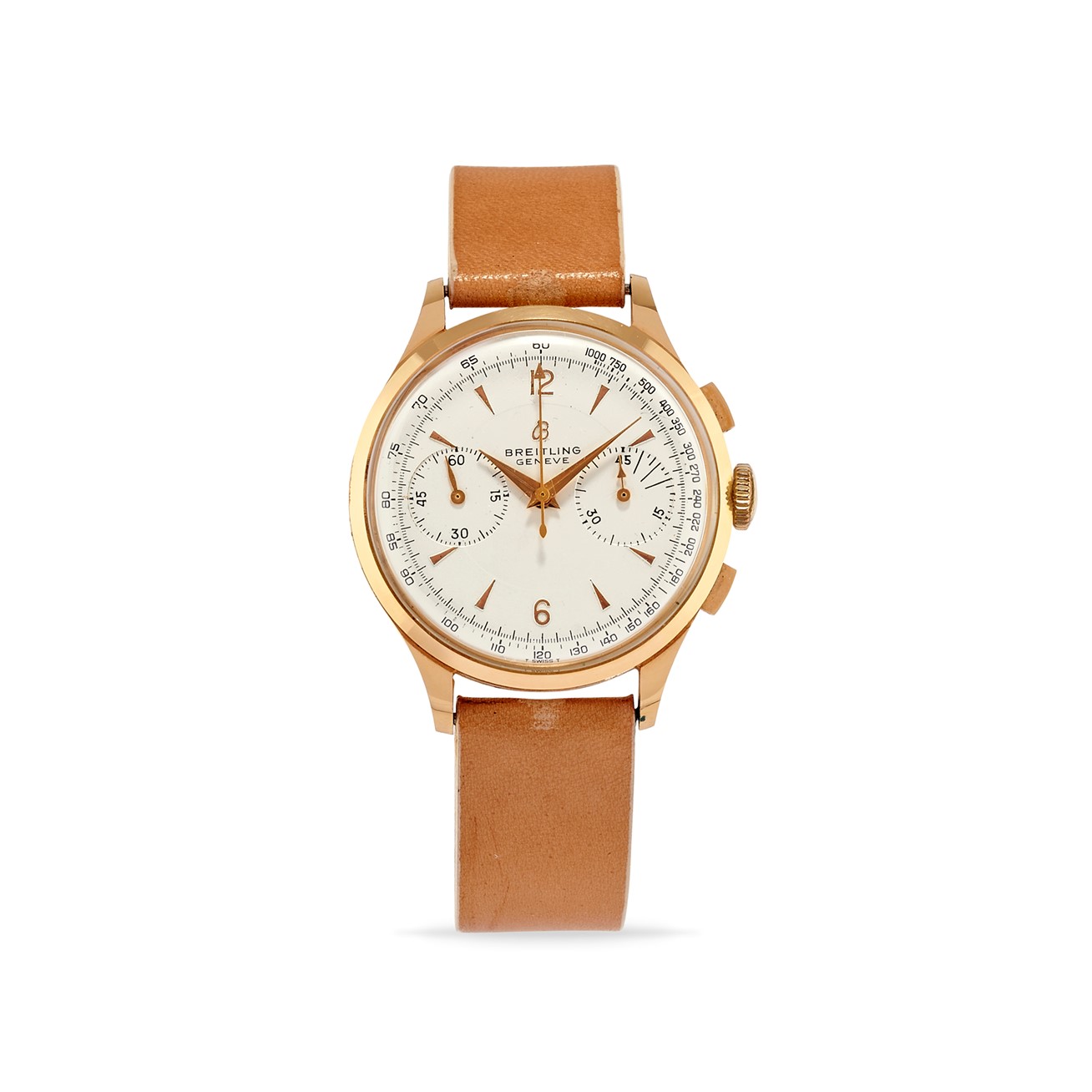 Cassa rotonda in oro 18k, pulsanti rettangolari.