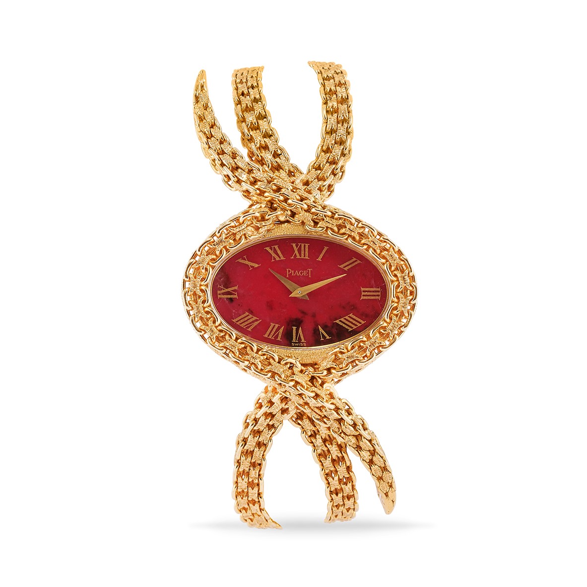 Note: Gli anni '70 sono stati il periodo più creativo di Piaget, quando il marchio realizzó incredibili orologi-bracciale con quadranti in inusuali pietre, diventati iconici tra i collezionisti.