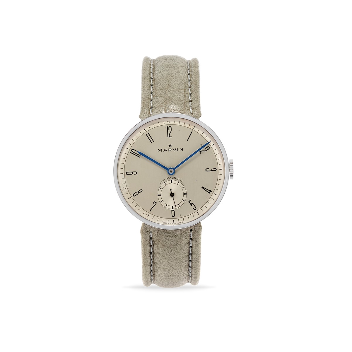 Quadrante argenté a due toni, numeri arabi dipinti.
