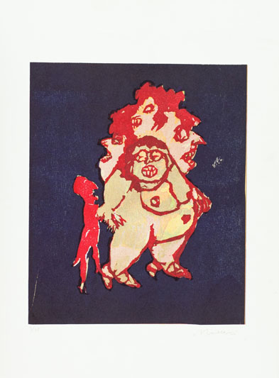 Mino Maccari Senza titolo Acquaforte e acquatinta di cm. 43,5x36, su carta di cm. 70x50, es. 4/35 La carta presenta lievi imperfezioni. Firma in basso a destra, tiratura e timbro a secco "Nemo Galleni", in basso a sinistra.