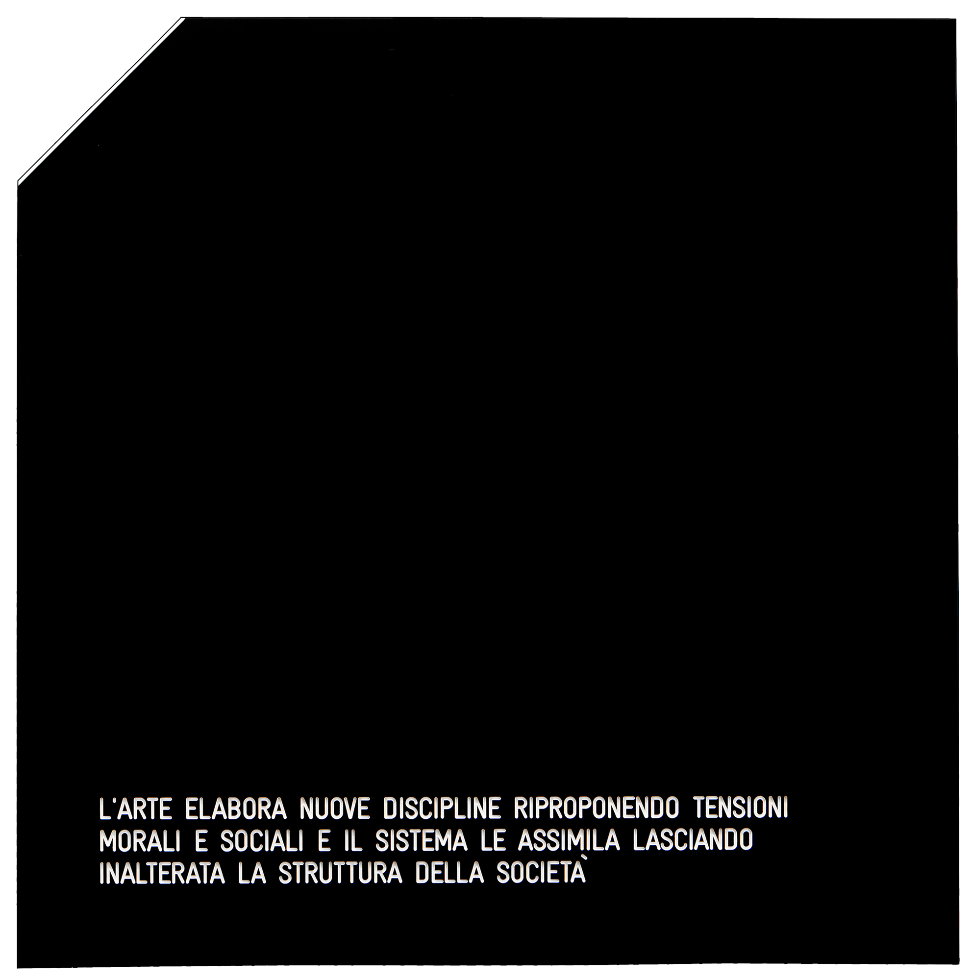 Assioma - L’arte elabora nuove discipline riproponendo tensioni morali e sociali e il sistema le assimila lasciando inalterata la struttura della società, 1971