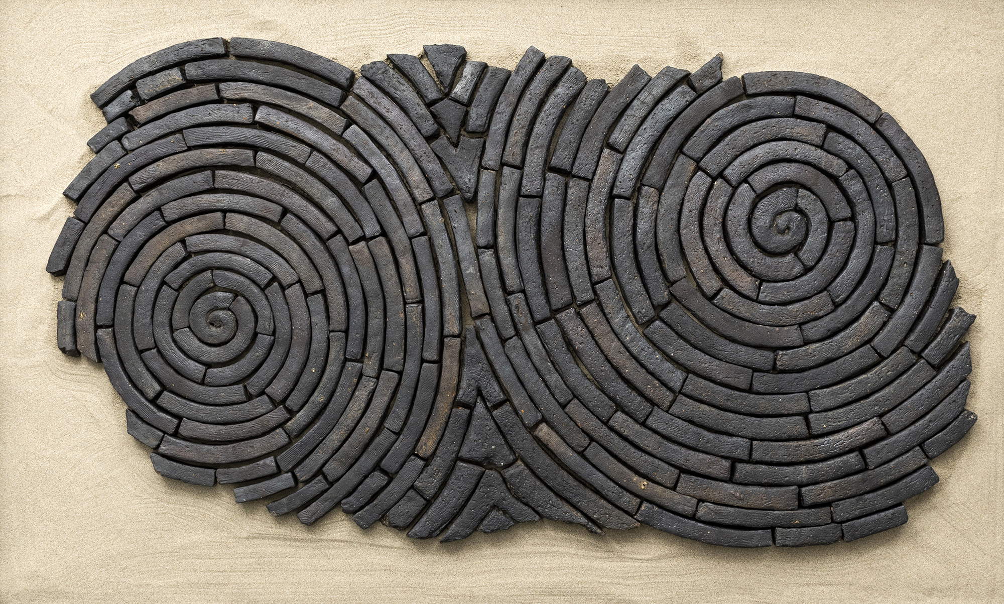 Opera attualmente allestita entro cassa in legno e sabbia con dimensioni cm. 274 x 174 x 14,5