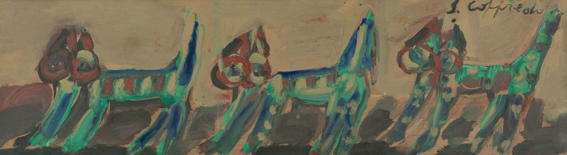 Silvio Loffredo Gatti Olio su tavola, cm. 31x108 Firmato in alto a destra....
