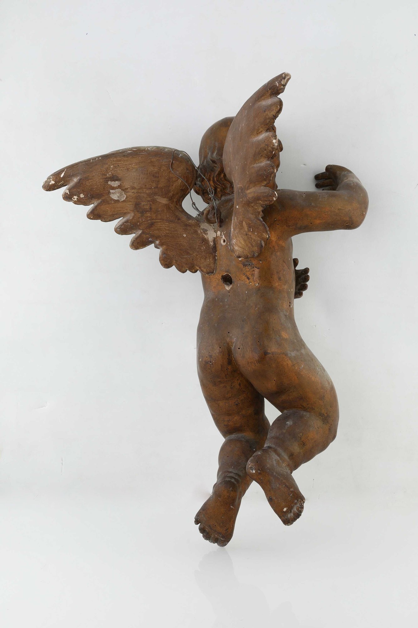 Scultura in legno laccato, Roma XVIII secolo raffigurante un amorino danzante con piccola foglia dorata sul pube. Provenienza: già collezione Odescalchi, altezza cm 58