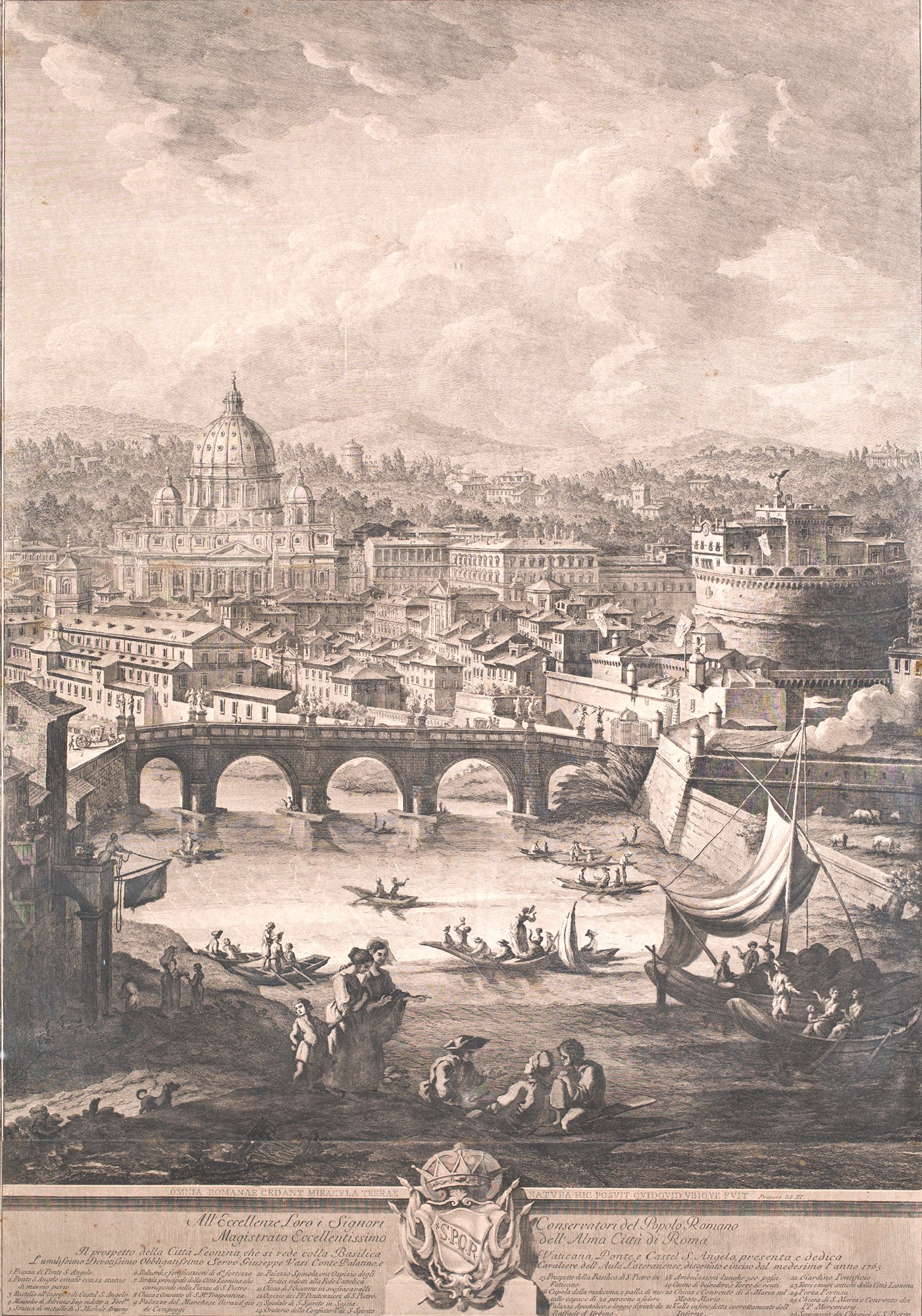 Giuseppe Vasi, Giuseppe Vasi, Prospetto della città leonina che si vede colla Basilica Vaticana, Ponte e Castel Sant'Angelo acquaforte, 100x69,5