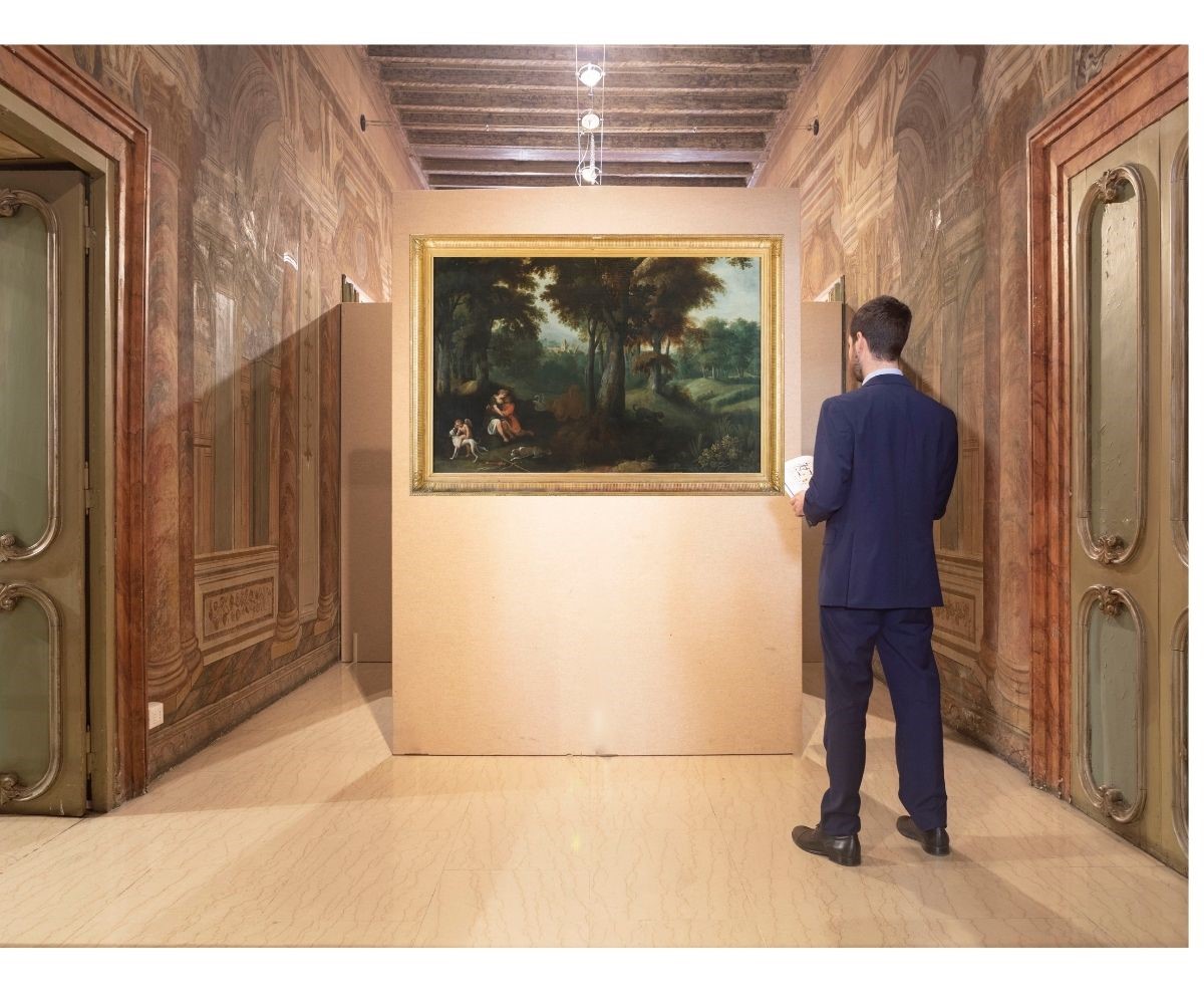 Lucas van Uden, Venere e Adone nel paesaggio con figura di Cupido e animali Autentica del prof. Didier Bodart in data 17/11/2010olio su tela, cm 98x148